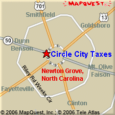 | CONTACT Circle City Taxes, Inc. 201 Raleigh Street PO Box 777 Newton Grove, NC 28366 Ph# 1-910-594-1040 Fax 1-910-1920 Hours Mon-Fri 9am-8pm Sat 9am-5pm |